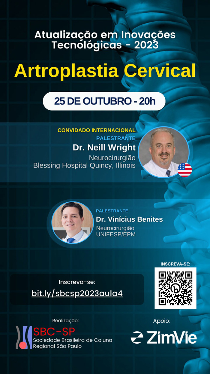 Convidado Internacional: Palestrante Dr. Neill Wright (Neurocirurgião) - Blessing Hospital, Quincy, Illinois Palestrante Dr. Vinícius Benites - Neurocirurgião - UNIFESP/EPM